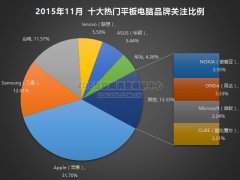 2015年11月的中國平板電腦市場上,蘋果繼續領跑品牌榜,優勢日益明顯;三星和臺電穩坐第二、第三。iPad Air2反超iPad mini 4,成為最受歡迎產品。...