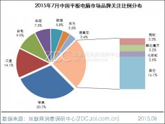 2015年7月中國平板電腦市場上,在售產品數量為416款,較上月下滑10.5%。品牌關注格局方面,蘋果關注度重新回到30.0%以上,領先優勢再度擴大。華為關注排名大幅提高,微軟等三家品牌相繼下滑。值得關注的是,本月消費者關注重心向小屏產品轉移,9英寸以下產品關注比例上漲2.4%。...