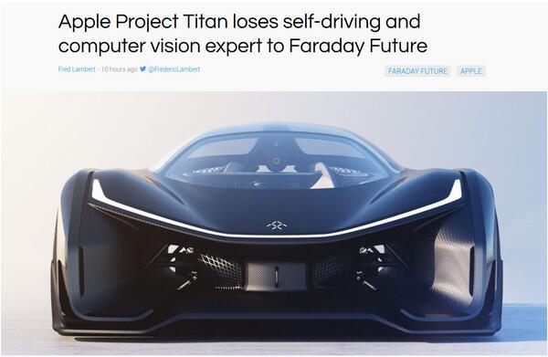 蘋(píng)果造車(chē)再受打擊?自動(dòng)駕駛團(tuán)隊(duì)核心成員跳槽FF