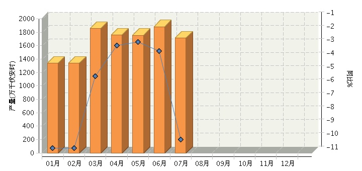 1-7月鉛酸電池行業累計完成產量同比增長-6.43%