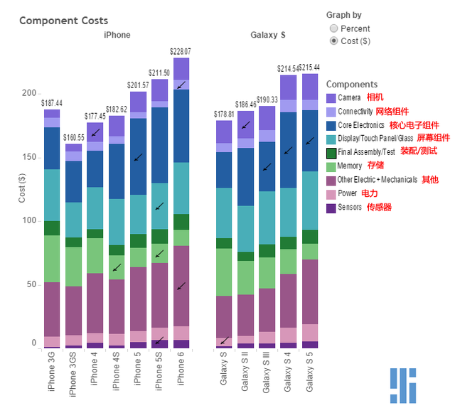蘋果三星手機硬件構成:iPhone 6成本高于S5