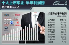 十大上市車企上半年利潤(rùn)榜 總計(jì)賺345.7億