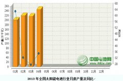 2013年1月-4月,全國規(guī)模以上太陽能電池行業(yè)累計完成產量同比增長32.58%。其中:4月份完成產量同比增長36.86%。...