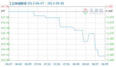 9月5日工業級碳酸鋰商品指數為103.95,與昨日持平,較周期內最高點112.10點(2012-11-04)下降了7.27%,較2012年01月05日最低點98.94點上漲了5.06%。(注:周期指2011-09-01至今) 工業級碳酸鋰商品指數...