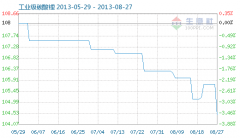 8月27日工業級碳酸鋰商品指數為104.46,較昨日下降了1.27點,較周期內最高點112.10點(2012-11-04)下降了6.82%,較2012年01月05日最低點98.94點上漲了5.58%。(注:周期指2011-09-01至今) 工業級碳酸鋰商品...