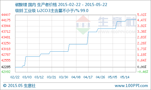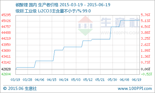 本周國內工業級碳酸鋰價格持穩 徘徊44000元/噸