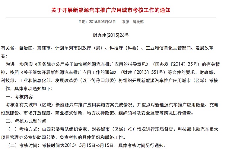 關于開展新能源汽車推廣應用城市考核工作的通知