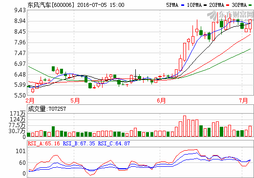 5日新能源汽車概念股盤后統計 東風汽車漲幅4.66%