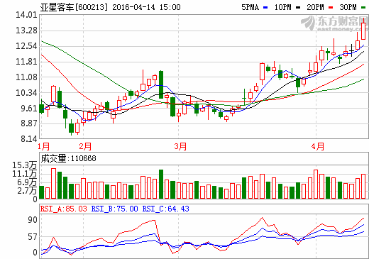 14日新能源汽車概念股盤后統(tǒng)計 亞星客車漲幅6.49%