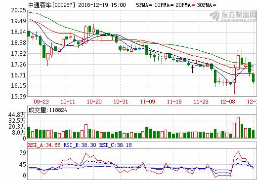 19日新能源汽車概念股盤后統計 中通客車跌幅2.80%
