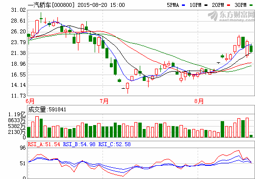20日新能源汽車概念股盤后統計 一汽轎車跌停