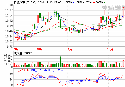 13日新能源汽車概念股盤后統計 長城汽車漲幅3.89%