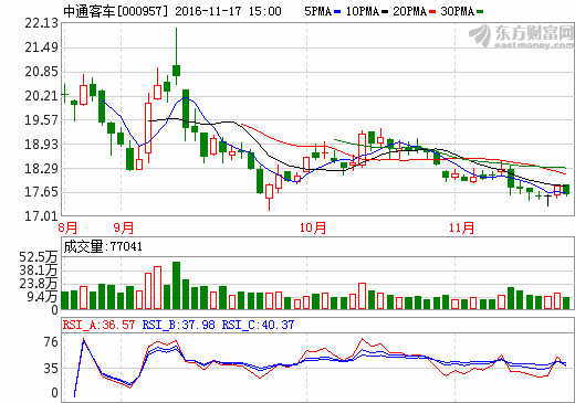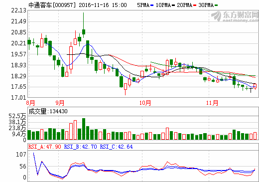 17日新能源汽車概念股盤后統(tǒng)計 中通客車跌幅1.40%