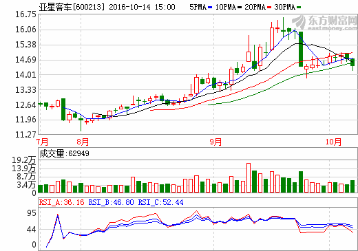 14日新能源汽車概念股盤后統計 亞星客車跌幅2.18%