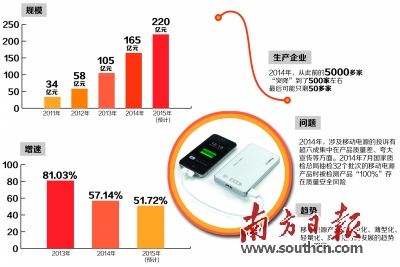 從整個行業(yè)的市場規(guī)模來看,2014年度仍是移動電源整體大幅度增長的一年。統(tǒng)計數(shù)據(jù)顯示,2014年度整個移動電源市場規(guī)模達到165億元,同比增長57.14%,雖然增速較2013年度的81.03%有所下滑,但依舊保持了50%以上的增長幅度。2015年之后,移動電源產業(yè)將迎來平穩(wěn)增長的時代。...