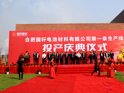 合肥國軒電池材料有限公司總投資50億元、年產5萬噸磷酸鐵鋰正極材料項目一期工程投產慶典在廬江縣經濟開發區隆重舉行。...