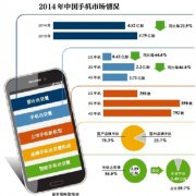 2014年全年,中國手機市場累積出貨量為4.52億部,比2013年的5.79億部下降21.9%。...