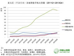 2013 年第四季度中國手機出貨量為 9080 萬部,與第三季度的9480萬部相比,下滑了4.3%。...