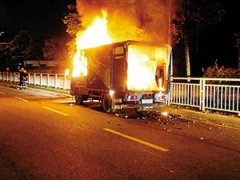 深圳一輛貨車著火 裝有900多斤手機廢舊電池
