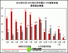 受春節(jié)假期影響,2013年2月份中國VC/PE市場活躍度出現(xiàn)明顯下滑。募資方面,僅3支基金募資完成,募資金額僅為10億元;投資方面,披露VC、PE投資案例共計17起,相比上個月下降50%;如不考慮京東商城7億美元巨額融資案例,投資規(guī)模也同樣大幅下滑。考慮到目前宏觀經(jīng)濟回暖緩慢、A股及美股市場IPO窗口持續(xù)關...